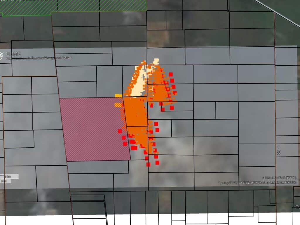 Karte 1: Entstehung und Entwicklung des Brandes in den ersten 24 Stunden (2. bis 3. September 2024)
