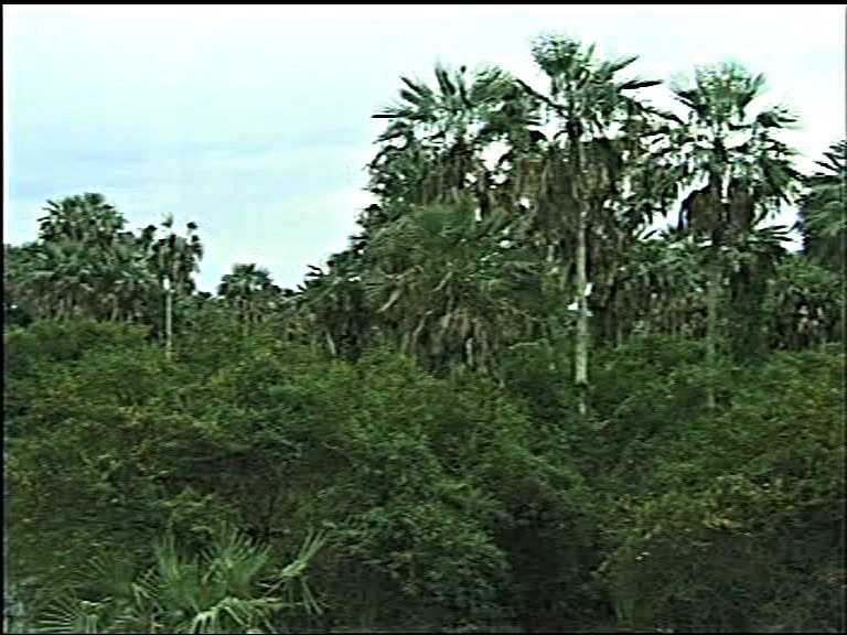 Palmenwälder, Grasfluren, Waldinseln und langgestreckte Waldzungen wechseln ab mit Schilfflächen und Lagunen. Flussläufe, die sich ihren Tausendmeilenweg von Osten, von den bolivianischen Anden, nach Westen zum Paraguaystrom gebahnt haben, bilden mit dichten Galeriewäldern die Grenzhecken, die die schöne Parklandschaft in gewaltige Teilstücke gliedern. Oft stießen wir auf verlassene Wohnstätten, denn die Sippen wandern weg, sobald das Wild durch die Nähe eines Dorfes vergrämt ist.“