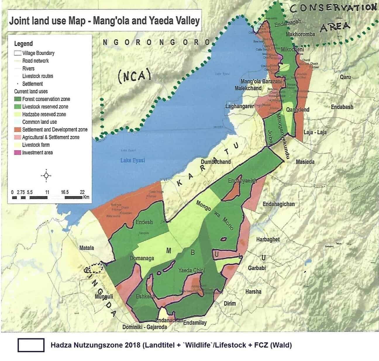 Nach mehr als einem Jahr des Widerstands einiger weniger einflussreicher und fehlgeleiteter Gemeindemitglieder in Dumbechand und Endanyawishi haben diese beiden Datoga-Dörfer nun den Raumordnungs- und Zonenplanungsprozess akzeptiert, so dass die Arbeit fortgesetzt wird. Ihre Mittel werden wirklich hilfreich sein für die Fertigstellung dieser beiden verbleibenden Dörfer, die für das Hadza-Land von entscheidender Bedeutung sind und in denen Hadza lebt und von den natürlichen Ressourcen für ihre Bedürfnisse abhängig ist.