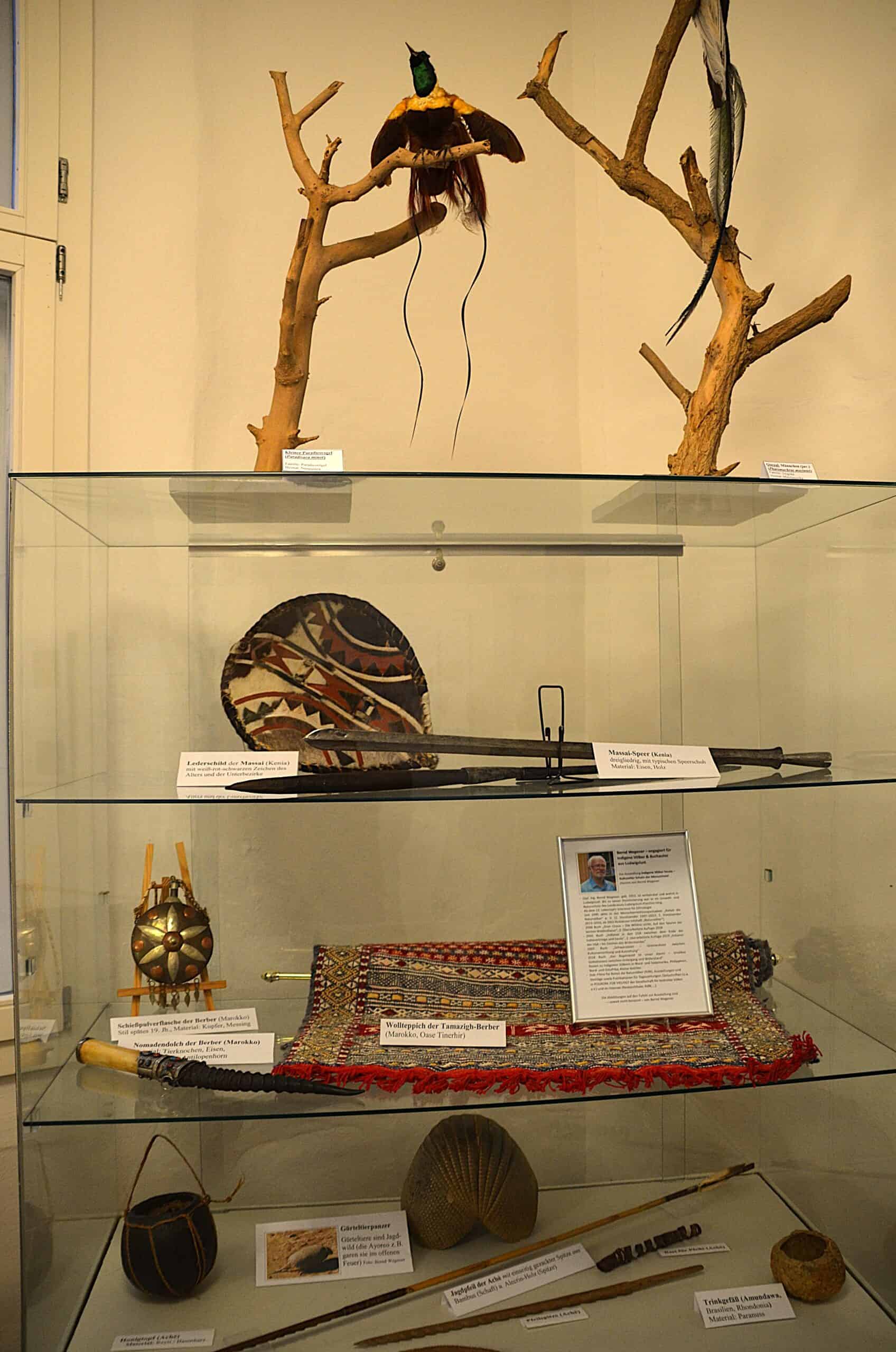 Die diesjährige Sonderausstellung Im NATUREUM ist deshalb den indigenen Völkern gewidmet und stammt von Bernd Wegener. Er ist seit 1995 in der Menschenrechtsorganisation „Rettet die Naturvölker“ e.V. aktiv, die in Ludwigslust ihren Sitz hat. Reisen in den letzten drei Jahrzehnten führten Bernd Wegener zu Ureinwohnern in Nord- und Ostafrika, Nord- und Südamerika sowie Südostasien. Dabei erwarb er auch ethnologische Sammlungsstücke, die in der Ausstellung gezeigt werden. Als Ergänzung zu den Kulturgütern der jeweiligen Völker gibt es Informationstafeln, die die traditionelle Kultur, Lebensraum und gegenwärtige Situation verdeutlichen.