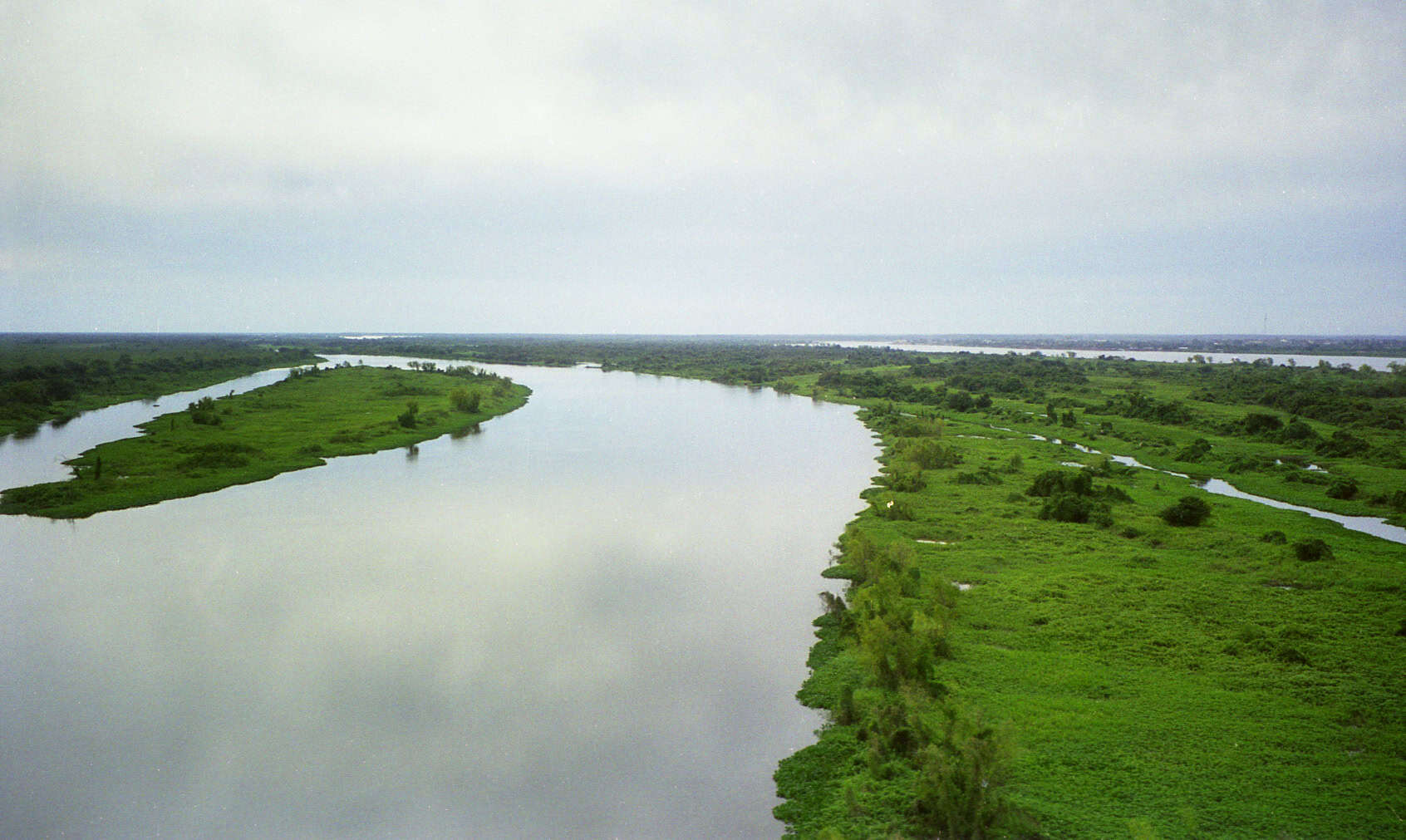 Bartolomé de las Casas: rote Flächen = 104 ha; rote Umgrenzungslinie + rote Flussinsel = 335 ha