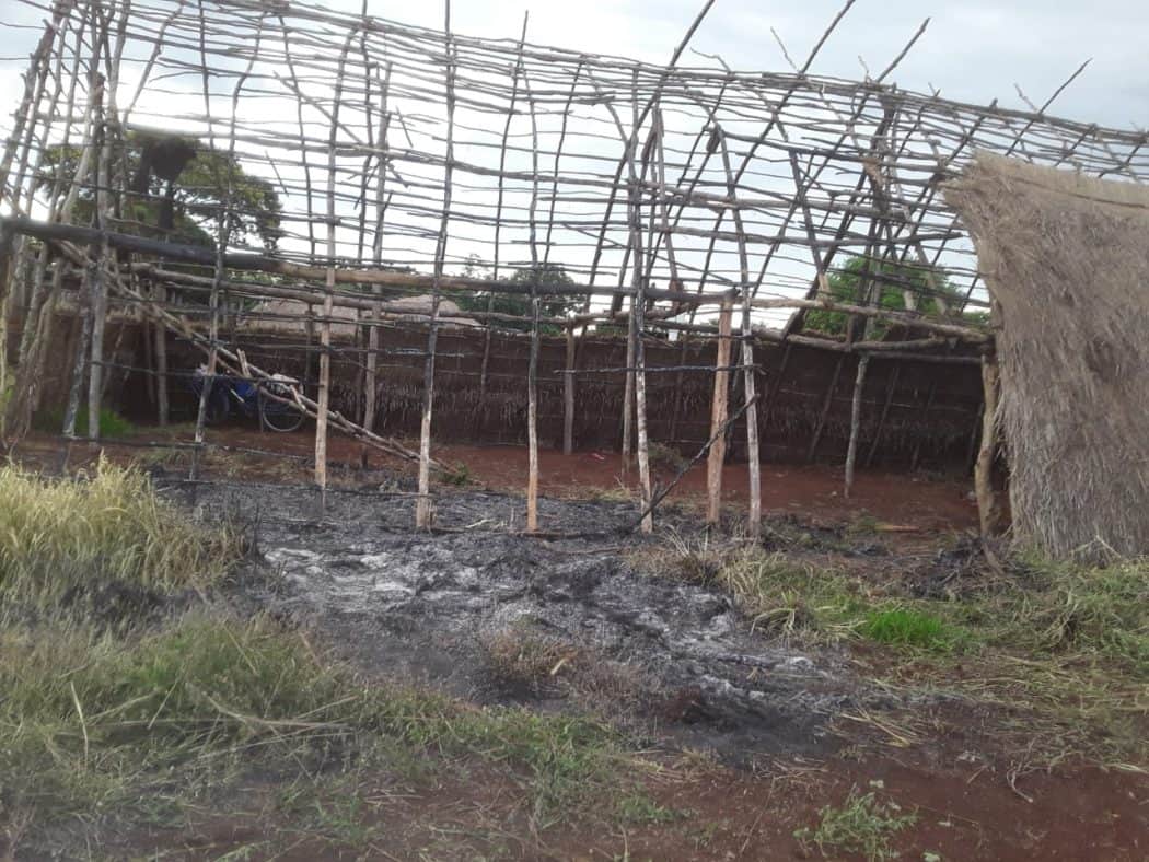 Das Ergebnis der Brandstiftung. In Laranjeira Nhanderu leben ungefähr 38 Familien mit einer großen Anzahl von älteren Menschen und Kindern. Foto: Guarani Kaiowá People
