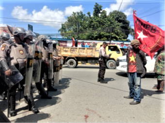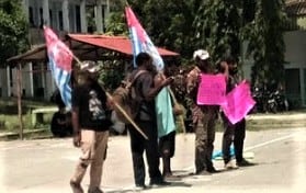 Die Namen der Studenten sind Yoseph Ernesto Matuan, Devio Tekege, und Ambrosius Fransiskus Elopere. Während des Protests hissten sie Morgensternflaggen – eine illegale Handlung unter indonesischen Besatzung – und sprachen sich gegen den so genannten “Dialogplan” aus, der von der Nationalen Kommission für Menschenrechte (Komnas HAM) stammt.