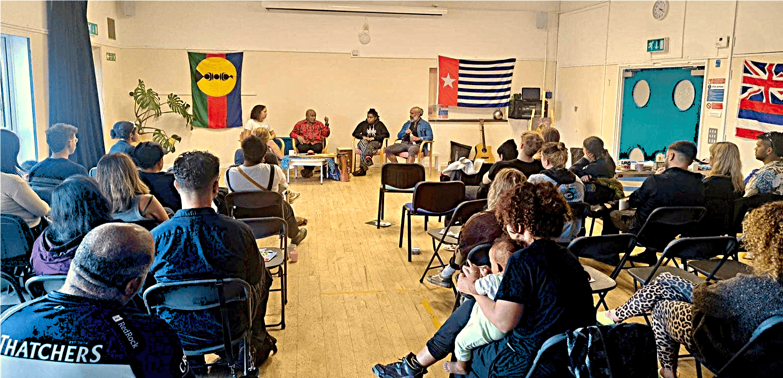 Die Veranstaltung im Oktober in Bristol, Großbritannien, hatte zum Ziel, die Unterstützung für die Kanak und den West Papua-Befreiungskampf in der britischen Fortschritts- und Umweltbewegung aufzubauen. Interim Präsident Wenda und seine Tochter Wene Wenda sprachen auf der Veranstaltung.